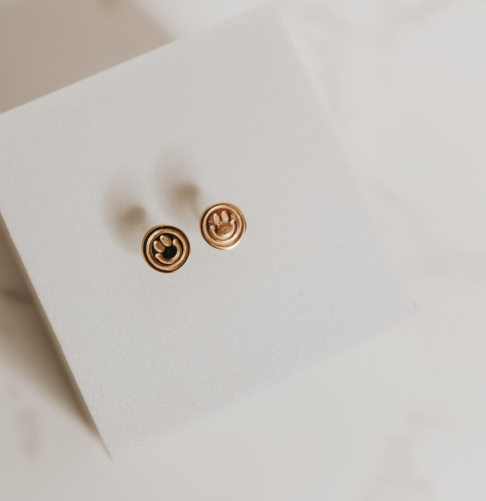 Add a touch of whimsy and positivity to your accessory collection with our hand-stamped Smiley Face Earring Studs. These delightful minimalist studs are designed to brighten up your day and elevate your style with their adorable smiley face charm.